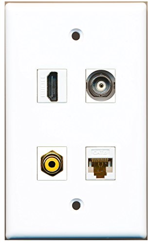 RiteAV - 1 Port HDMI 1 Port RCA Yellow 1 Port BNC 1 Port Cat6 Ethernet White Wall Plate