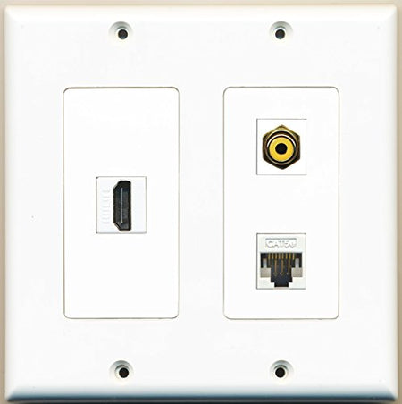 RiteAV - 1 Port HDMI 1 Port RCA Yellow 1 Port Cat5e Ethernet White - 2 Gang Wall Plate