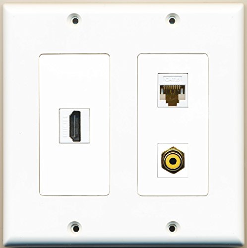 RiteAV - 1 Port HDMI 1 Port RCA Yellow 1 Port Cat6 Ethernet White - 2 Gang Wall Plate