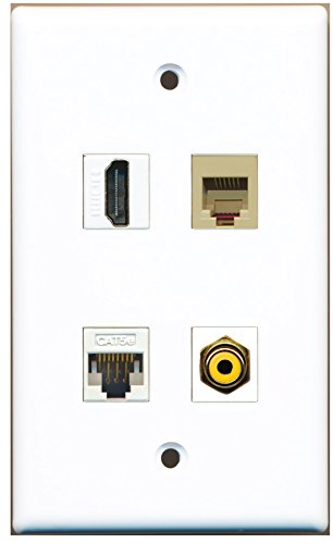 RiteAV - 1 Port HDMI 1 Port RCA Yellow 1 Port Phone RJ11 RJ12 Beige 1 Port Cat5e Ethernet White Wall Plate