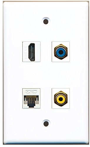 RiteAV - 1 Port HDMI 1 Port RCA Yellow 1 Port RCA Blue 1 Port Cat5e Ethernet White Wall Plate