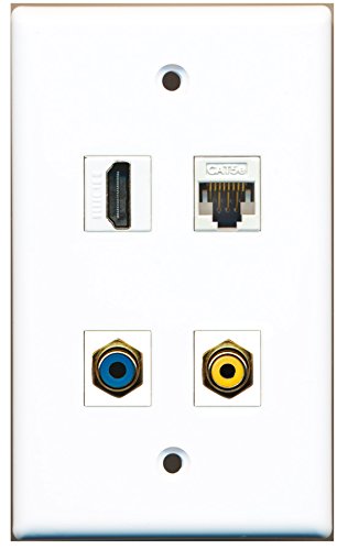 RiteAV - 1 Port HDMI 1 Port RCA Yellow 1 Port RCA Blue 1 Port Cat5e Ethernet White Wall Plate