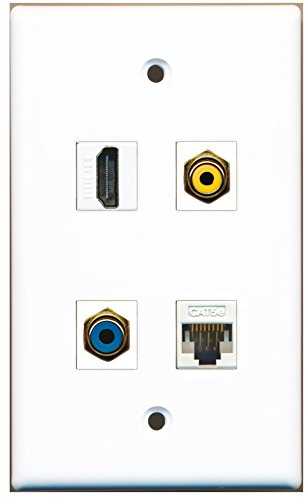 RiteAV - 1 Port HDMI 1 Port RCA Yellow 1 Port RCA Blue 1 Port Cat5e Ethernet White Wall Plate