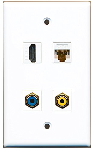 RiteAV - 1 Port HDMI 1 Port RCA Yellow 1 Port RCA Blue 1 Port Cat6 Ethernet White Wall Plate