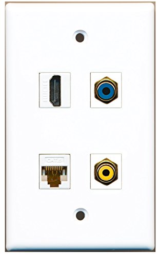 RiteAV - 1 Port HDMI 1 Port RCA Yellow 1 Port RCA Blue 1 Port Cat6 Ethernet White Wall Plate