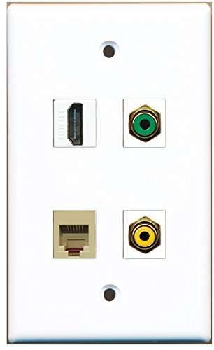 RiteAV - 1 Port HDMI 1 Port RCA Yellow 1 Port RCA Green 1 Port Phone RJ11 RJ12 Beige Wall Plate
