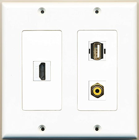 RiteAV - 1 Port HDMI 1 Port RCA Yellow 1 Port USB A-A - 2 Gang Wall Plate
