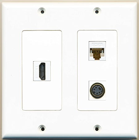 RiteAV - 1 Port HDMI 1 Port S-Video 1 Port Cat6 Ethernet White - 2 Gang Wall Plate