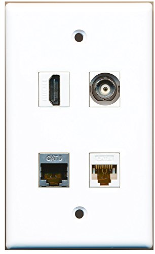 RiteAV - 1 Port HDMI 1 Port Shielded Cat6 Ethernet 1 Port BNC 1 Port Cat6 Ethernet White Wall Plate