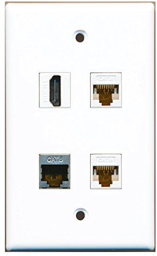 RiteAV - 1 Port HDMI 1 Port Shielded Cat6 Ethernet 2 Port Cat6 Ethernet White Wall Plate