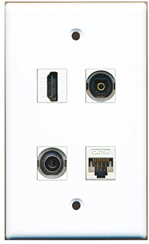 RiteAV - 1 Port HDMI 1 Port Toslink 1 Port 3.5mm 1 Port Cat5e Ethernet White Wall Plate