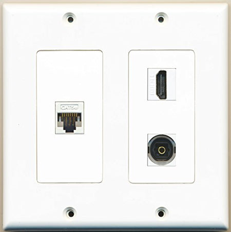 RiteAV - 1 Port HDMI 1 Port Toslink 1 Port Cat5e Ethernet White - 2 Gang Wall Plate