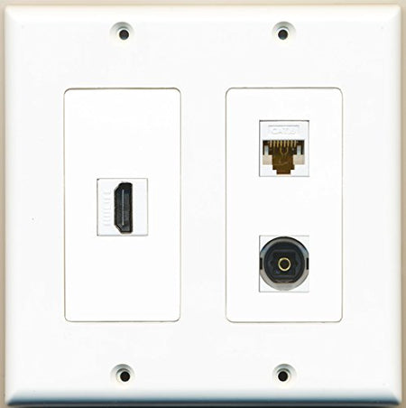 RiteAV - 1 Port HDMI 1 Port Toslink Digital Audio 1 Port Cat6 Ethernet White - 2 Gang Wall Plate