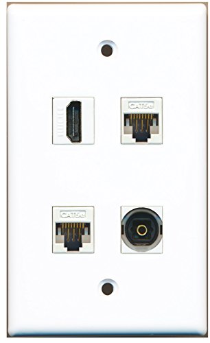 RiteAV - 1 Port HDMI 1 Port Toslink 2 Port Cat5e Ethernet White Wall Plate