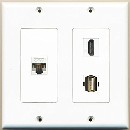 RiteAV - 1 Port HDMI 1 Port USB A-A F/F 1 Port Cat5e Ethernet White - 2 Gang Wall Plate