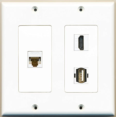 RiteAV - 1 Port HDMI 1 Port USB A-A 1 Port Cat6 Ethernet White - 2 Gang Wall Plate