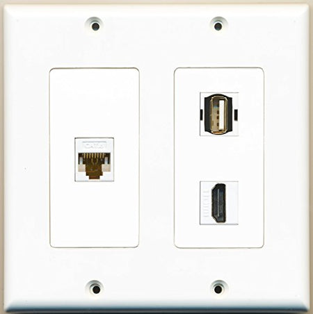 RiteAV - 1 Port HDMI 1 Port USB A-A 1 Port Cat6 Ethernet White - 2 Gang Wall Plate