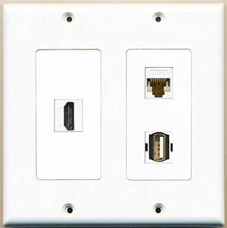RiteAV - 1 Port HDMI 1 Port USB A-A 1 Port Cat6 Ethernet White - 2 Gang Wall Plate