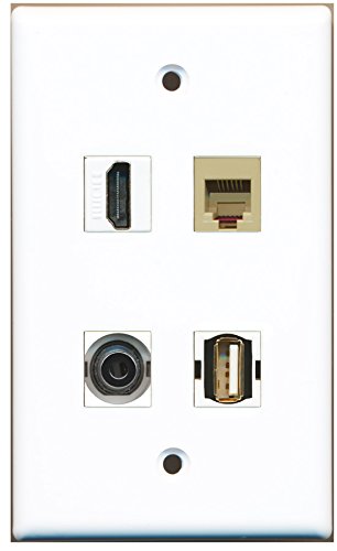 RiteAV - 1 Port HDMI 1 Port USB A-A 1 Port Phone RJ11 RJ12 Beige 1 Port 3.5mm Wall Plate