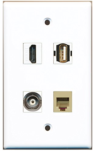 RiteAV - 1 Port HDMI 1 Port USB A-A 1 Port Phone RJ11 RJ12 Beige 1 Port BNC Wall Plate