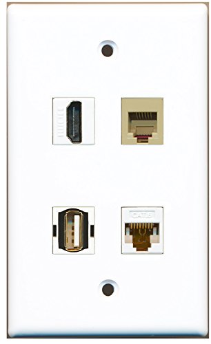 RiteAV - 1 Port HDMI 1 Port USB A-A 1 Port Phone RJ11 RJ12 Beige 1 Port Cat6 Ethernet White Wall Plate