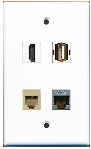 RiteAV - 1 Port HDMI 1 Port USB A-A 1 Port Phone RJ11 RJ12 Beige 1 Port Shielded Cat6 Ethernet Wall Plate