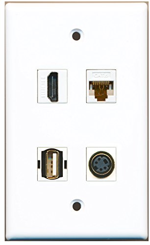 RiteAV - 1 Port HDMI 1 Port USB A-A 1 Port S-Video 1 Port Cat6 Ethernet White Wall Plate