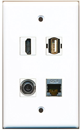 RiteAV - 1 Port HDMI 1 Port USB A-A 1 Port Shielded Cat6 Ethernet 1 Port 3.5mm Wall Plate