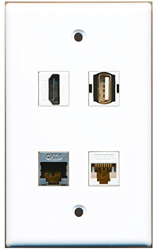 RiteAV - 1 Port HDMI 1 Port USB A-A 1 Port Shielded Cat6 Ethernet 1 Port Cat6 Ethernet White Wall Plate