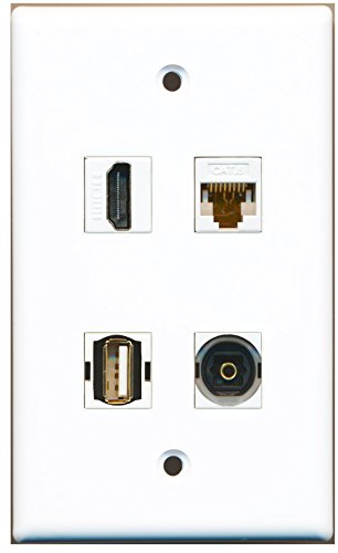 RiteAV - 1 Port HDMI 1 Port USB A-A 1 Port Toslink 1 Port Cat6 Ethernet White Wall Plate