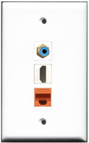 RiteAV - 1 Port HDMI 1 RCA Blue 1 Cat5e Ethernet Orange Wall Plate