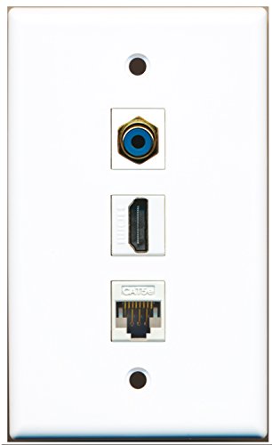 RiteAV - 1 Port HDMI 1 RCA Blue 1 Cat5e Ethernet White Wall Plate