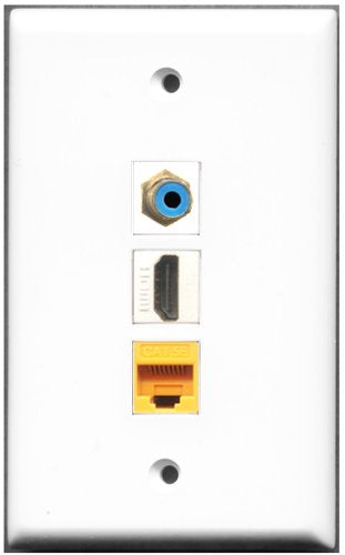 RiteAV - 1 Port HDMI 1 RCA Blue 1 Cat5e Ethernet Yellow Wall Plate
