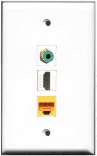 RiteAV - 1 Port HDMI 1 RCA Green 1 Cat5e Ethernet Yellow Wall Plate