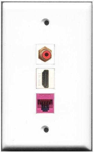 RiteAV - 1 Port HDMI 1 RCA Red 1 Cat5e Ethernet Pink Wall Plate