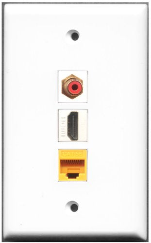 RiteAV - 1 Port HDMI 1 RCA Red 1 Cat5e Ethernet Yellow Wall Plate