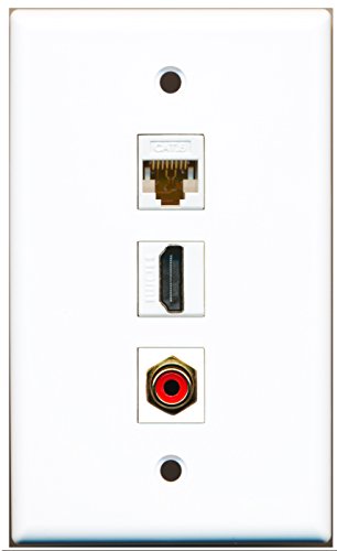 RiteAV - 1 Port HDMI 1 RCA Red 1 Cat6 Ethernet White Wall Plate