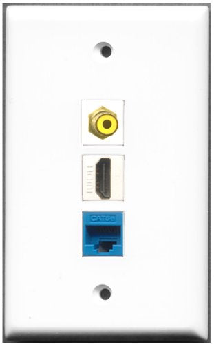 RiteAV - 1 Port HDMI 1 RCA Yellow 1 Cat5e Ethernet Blue Wall Plate