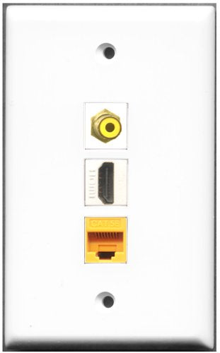 RiteAV - 1 Port HDMI 1 RCA Yellow 1 Cat5e Ethernet Yellow Wall Plate