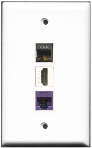 RiteAV - 1 Port HDMI 1 Shielded Cat6 Ethernet 1 Cat5e Ethernet Purple Wall Plate