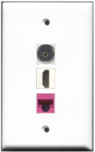 RiteAV - 1 Port HDMI 1 Toslink 1 Cat5e Ethernet Pink Wall Plate