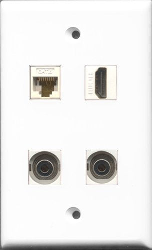 RiteAV 1 Port HDMI 2 Port 3.5mm and 1 Port Cat6 Ethernet White Wall Plate