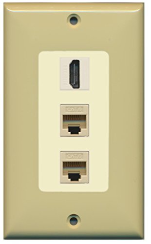 RiteAV - 1 Port HDMI 2 Port Cat6 Ethernet Decorative Wall Plate - Ivory/Light Almond