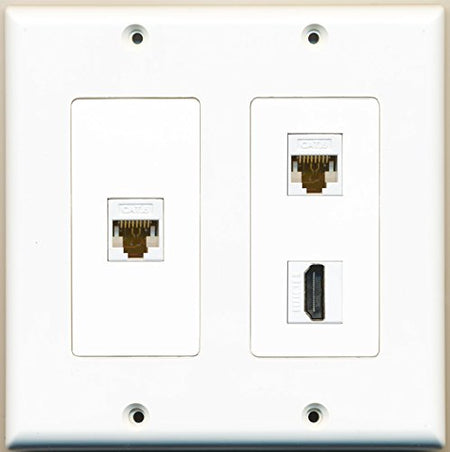 RiteAV - 1 Port HDMI 2 Port Cat6 Ethernet White - 2 Gang Wall Plate