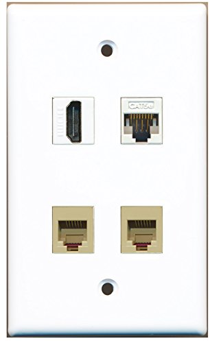 RiteAV - 1 Port HDMI 2 Port Phone RJ11 RJ12 Beige 1 Port Cat5e Ethernet White Wall Plate