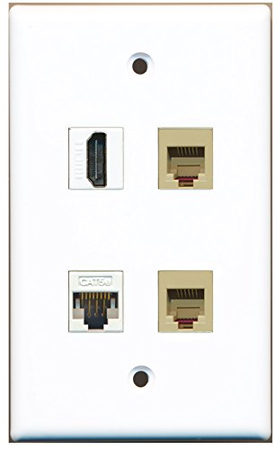 RiteAV - 1 Port HDMI 2 Port Phone RJ11 RJ12 Beige 1 Port Cat5e Ethernet White Wall Plate