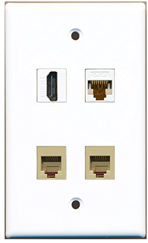 RiteAV - 1 Port HDMI 2 Port Phone RJ11 RJ12 Beige 1 Port Cat6 Ethernet White Wall Plate
