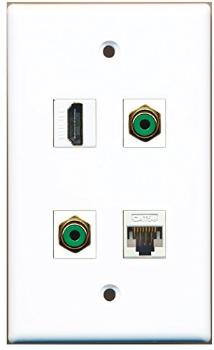RiteAV - 1 Port HDMI 2 Port RCA Green 1 Port Cat5e Ethernet White Wall Plate