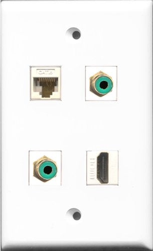 RiteAV 1 Port HDMI 2 Port RCA Green and 1 Port Cat6 Ethernet White Wall Plate