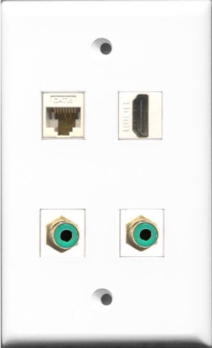 RiteAV 1 Port HDMI 2 Port RCA Green and 1 Port Cat6 Ethernet White Wall Plate